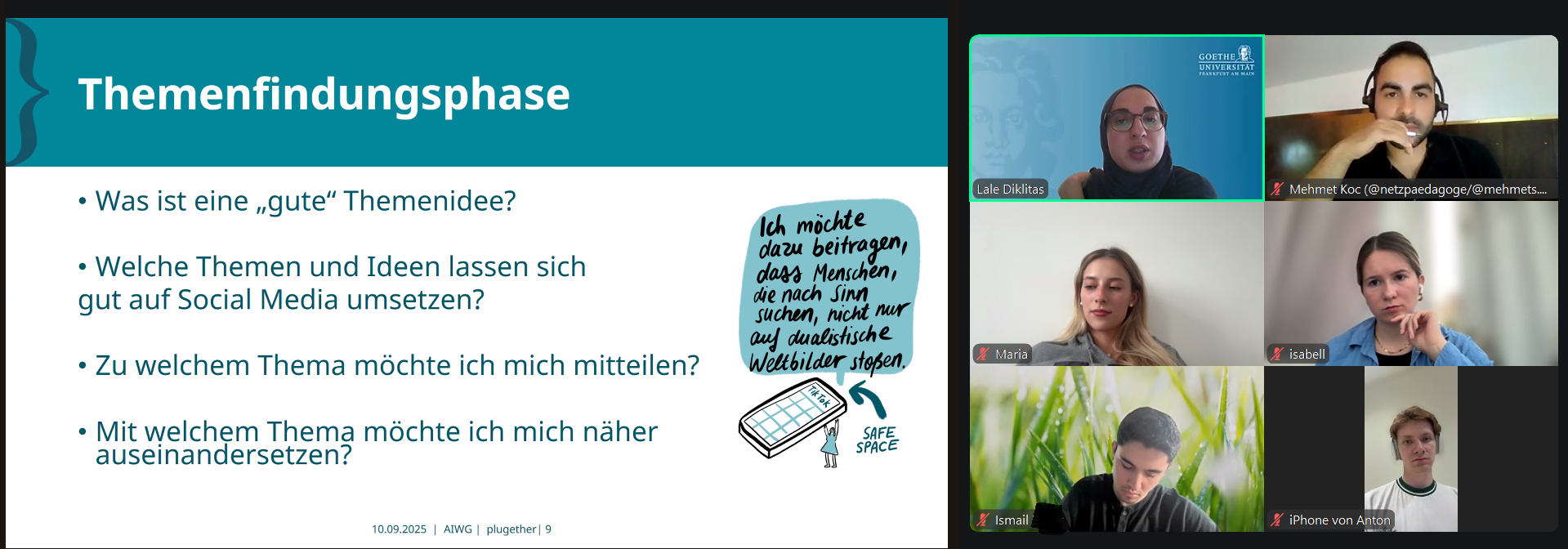 Mit einem digitalen Auftakt am 10. September startete die dritte Workshopreihe von plugether, bei dem Creatorin Rosa Jellinek das notwendige Know-how zur Produktion wirkungsvoller TikTok-Inhalte vermittelte. „Wie werde ich als (religiöser) Mensch wahrgenommen und wie kann ich meine Perspektiven in der Gesellschaft stärker als Ressource sichtbar machen?“ Über diese und andere Fragen diskutierten die Teilnehmenden dann am 22. und 23. September persönlich. Begleitet wurden sie von Anton Hartmann, der auf seinem kooperativen Kanal aktuellen politischen und gesellschaftlichen Fragen nachgeht und Mehmet Koc, der als Sozialarbeiter und über Social Media zu (Jugend-)Extremismus, Demokratieförderung und weiteren Themen Aufklärungsarbeit leistet.